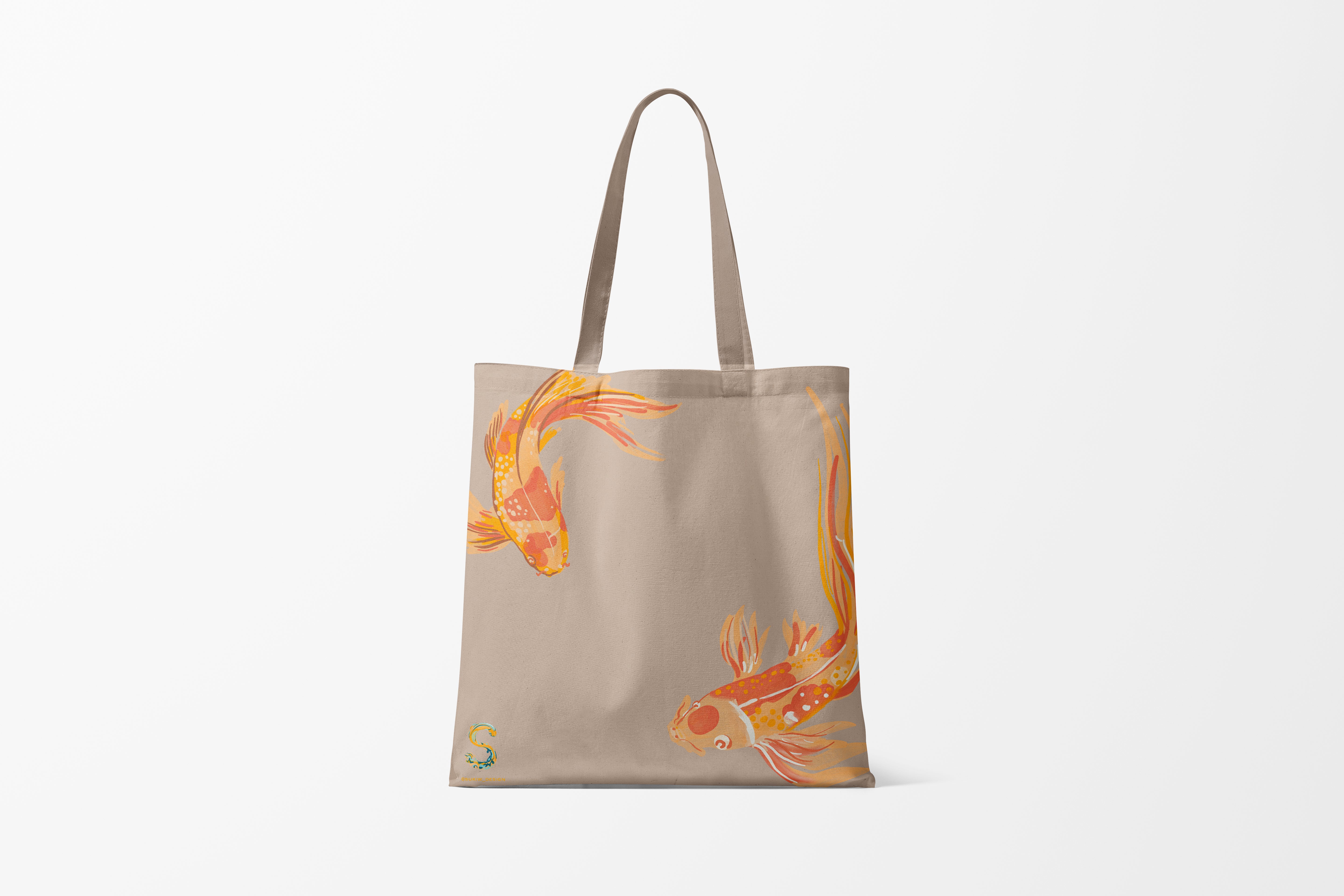 Made from 100% upcycled cotton with hand-screen printed Koi design