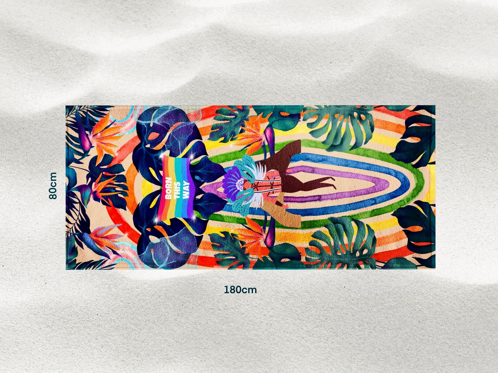 Our vibrant pride beach towel crafted for the ultimate beach comfort. The beach towel that speaks to the core of Suki W London's ethos and operations. The towel is made from ultra-soft and quick-drying microfiber ensuring the ultimate practicality and style.