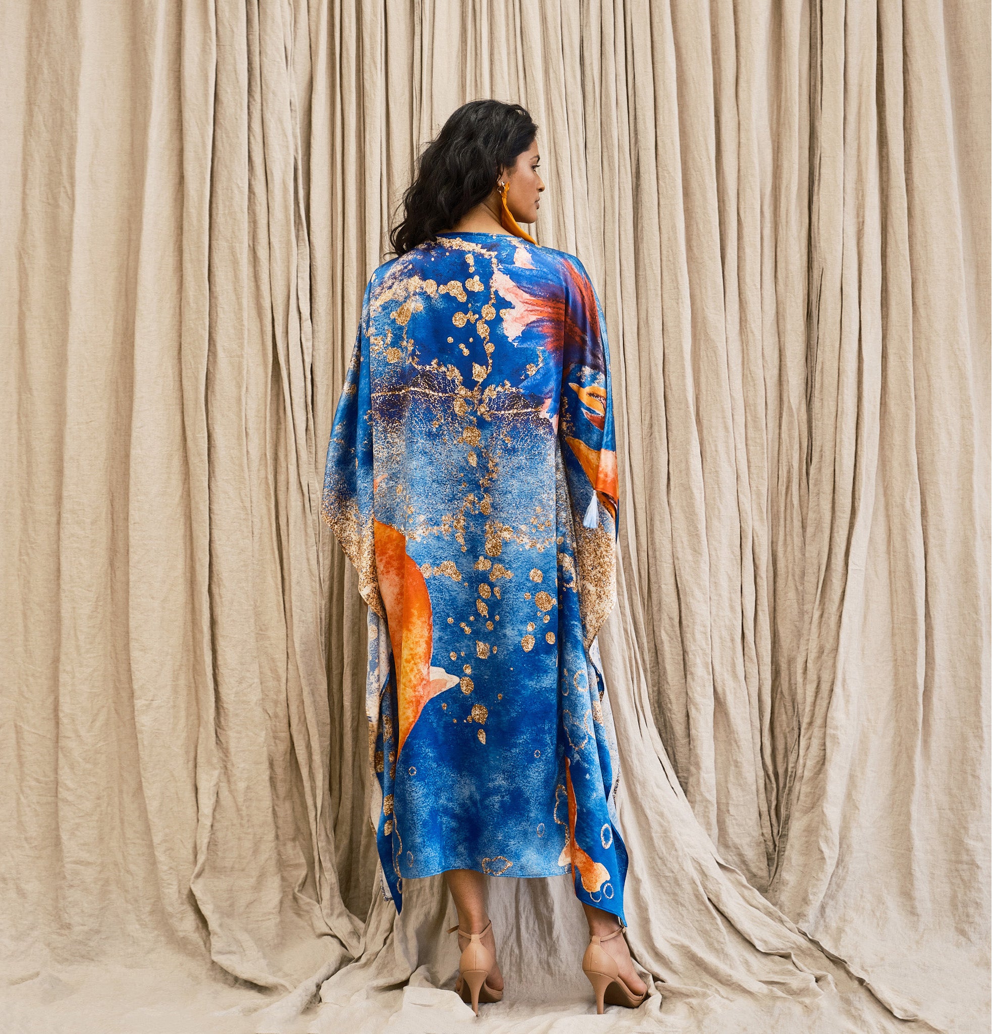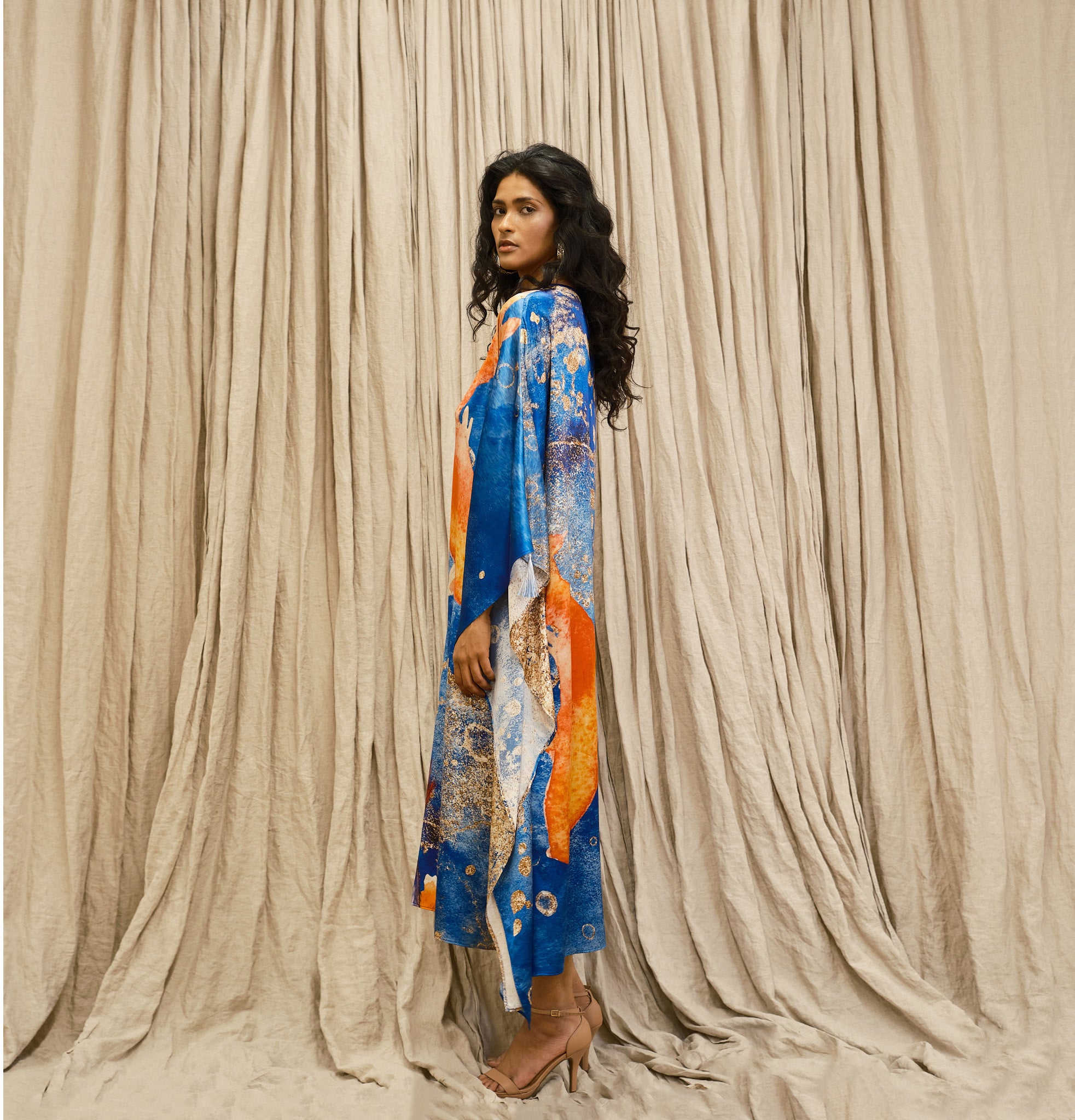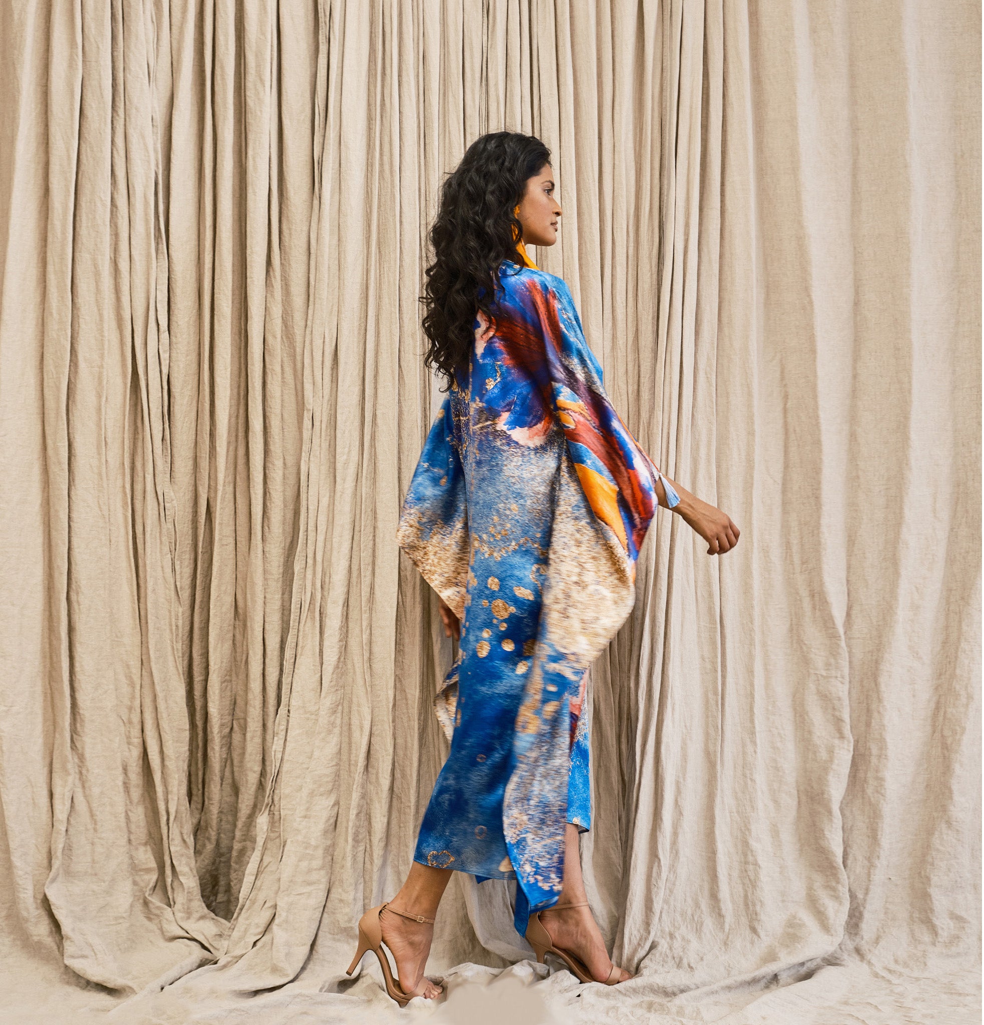 A made to order piece. The Manami Kaftan Dress is a flowy, full-length dress, designed for a light and comfortable wear for maximized relaxation.
