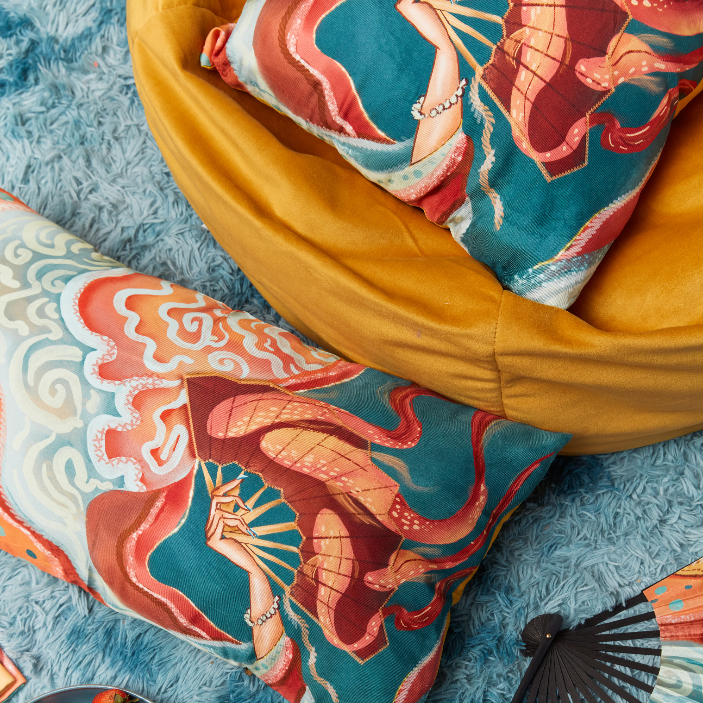 ‘Red Fanfare’ Silk Cushion Set