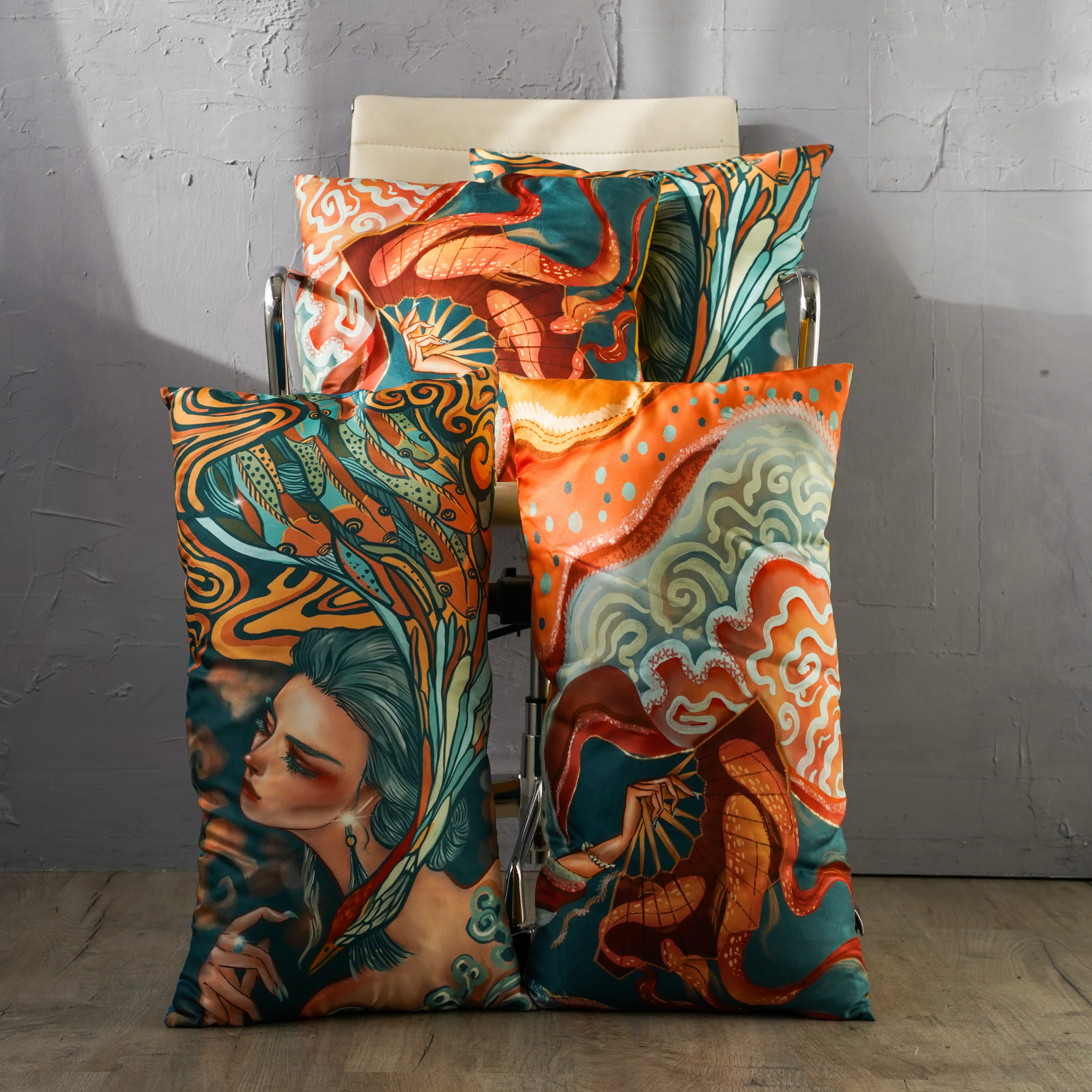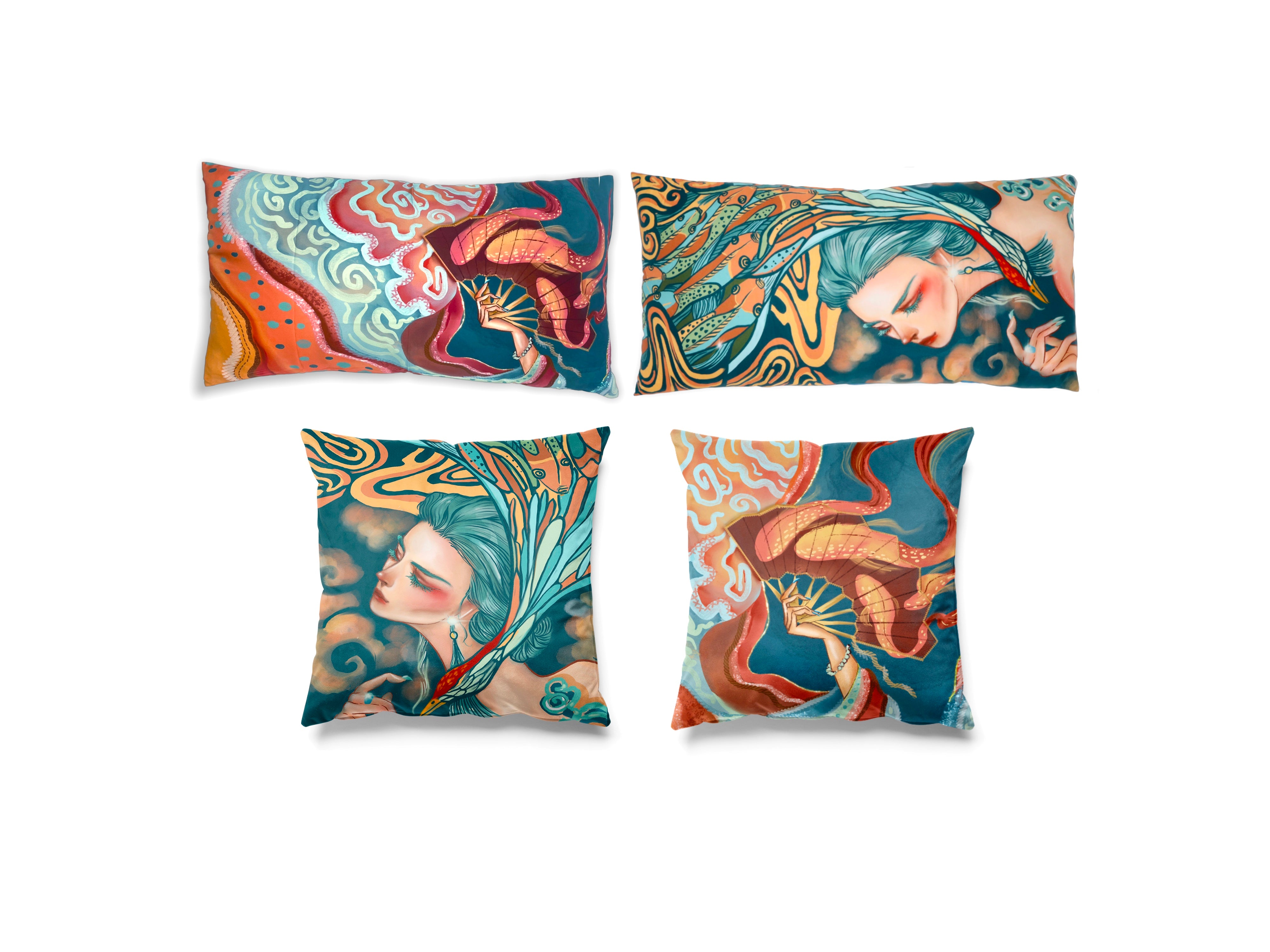 Elevate your home with the Silk Cushion Bundle, a perfectly curated set designed for effortless luxury. Featuring the rich elegance of the ‘Red Fanfare’ cushions and the serene beauty of the ‘Blue Maiden’ designs, this collection brings harmony and sophistication to any space. An ideal combination for those looking to refresh their décor or a perfect gift for lovers of timeless, artistic home accents.