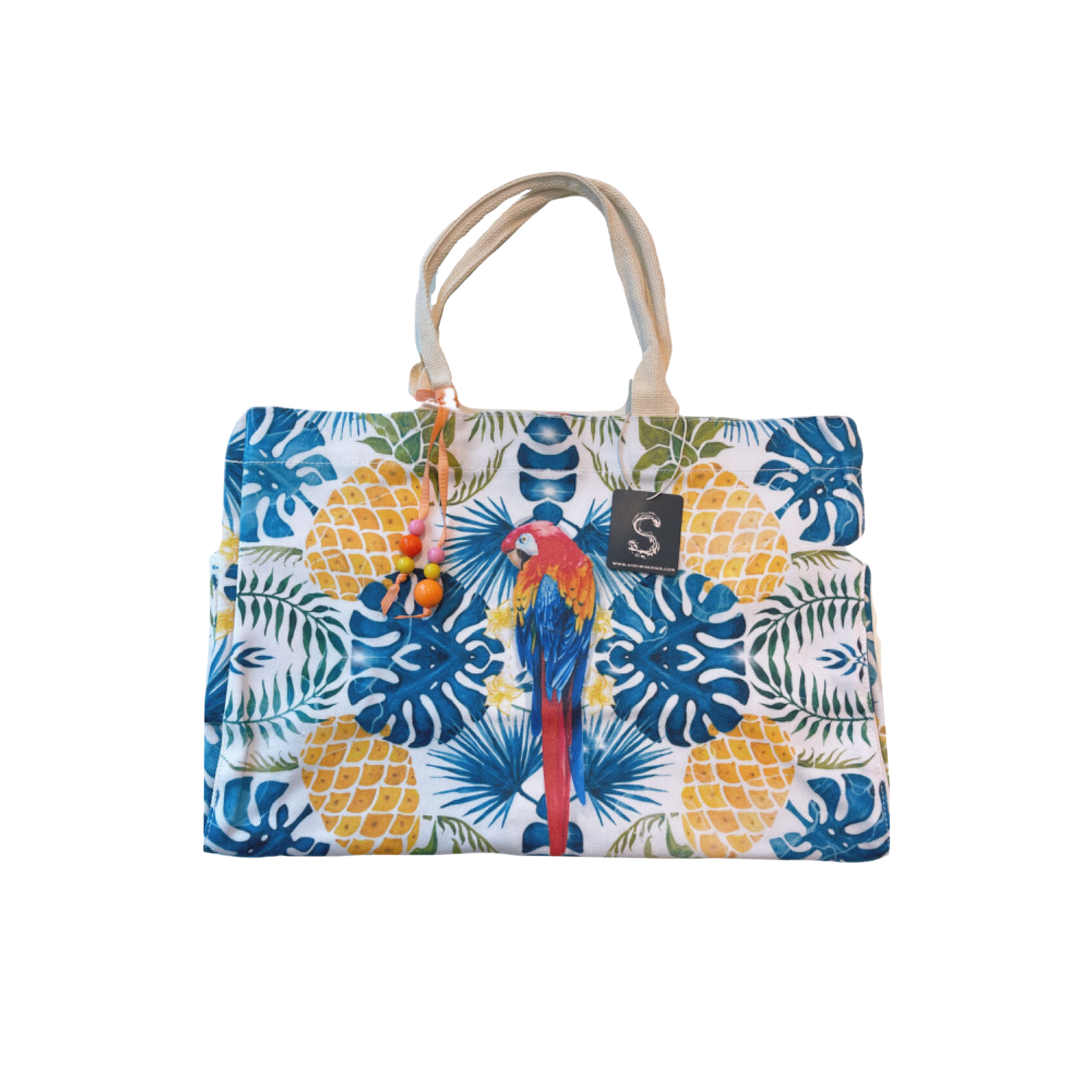 The Tropical Oasis Tote Bag is a vibrant and practical accessory inspired by tropical landscapes. Crafted from durable, eco-friendly materials, this bag offers ample storage space, making it perfect for daily use or travel. Its exotic design and sustainability focus make it a standout piece that marries style, function, and conscious living.