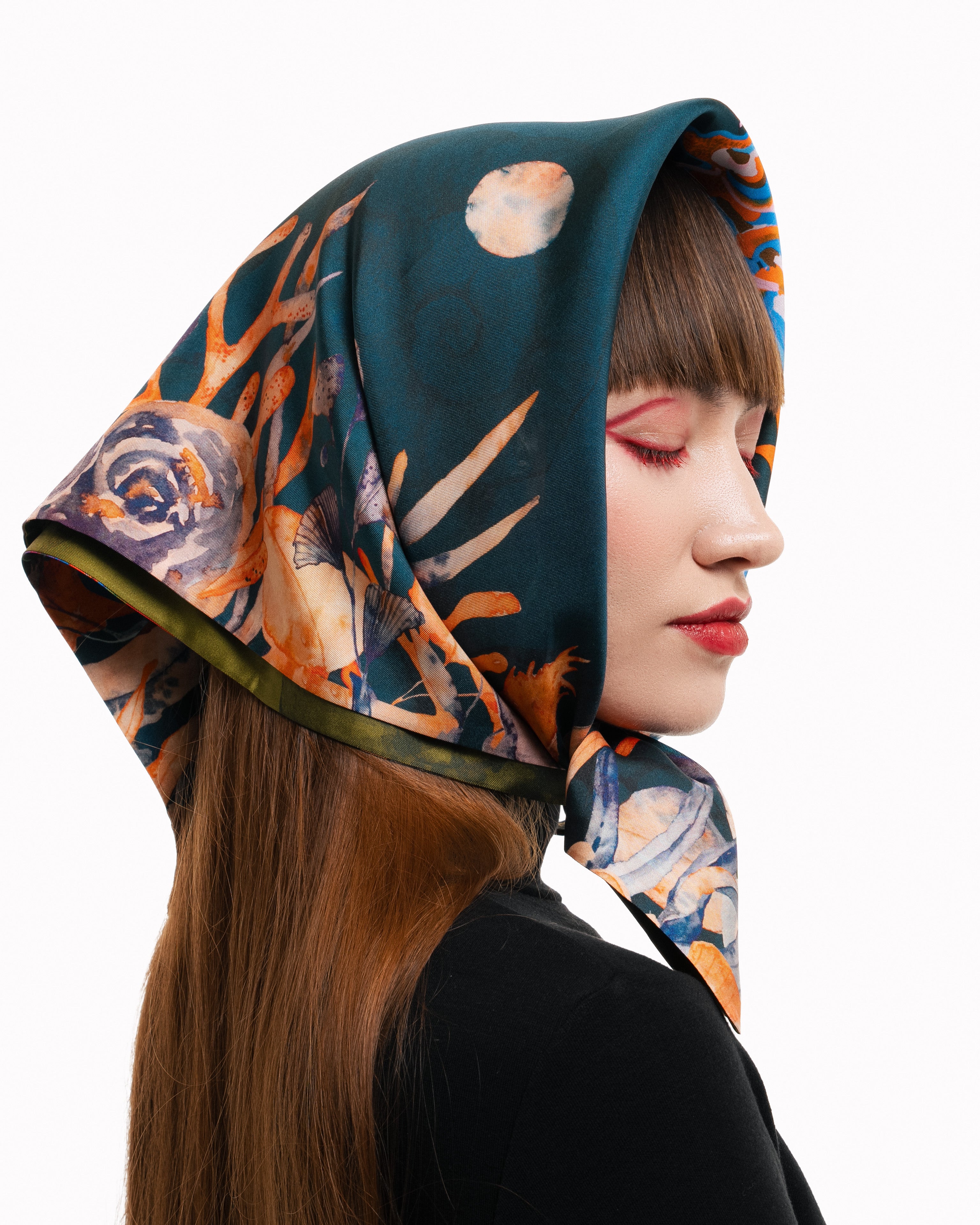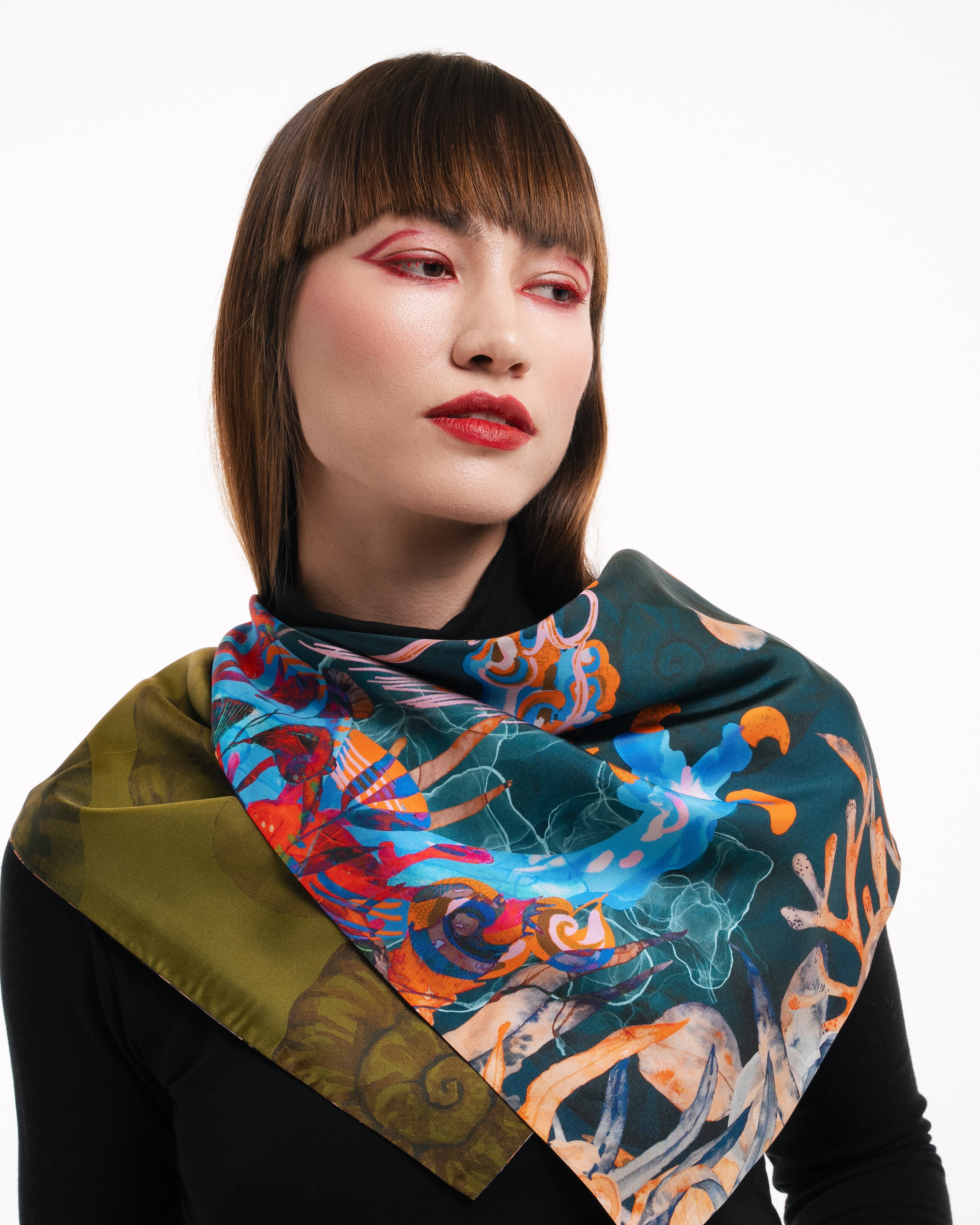 Embrace quiet strength with the Midnight Blossom Into Power – Large Square Scarf, a refined statement piece crafted from 100% silk twill. Its deep, moody tones and double-sided digital print evoke elegance and depth, while hand-sewn finishing by artisans in Hong Kong adds a touch of thoughtful craftsmanship. Perfect for those who carry power with grace, this scarf is designed to inspire and elevate, season after season.