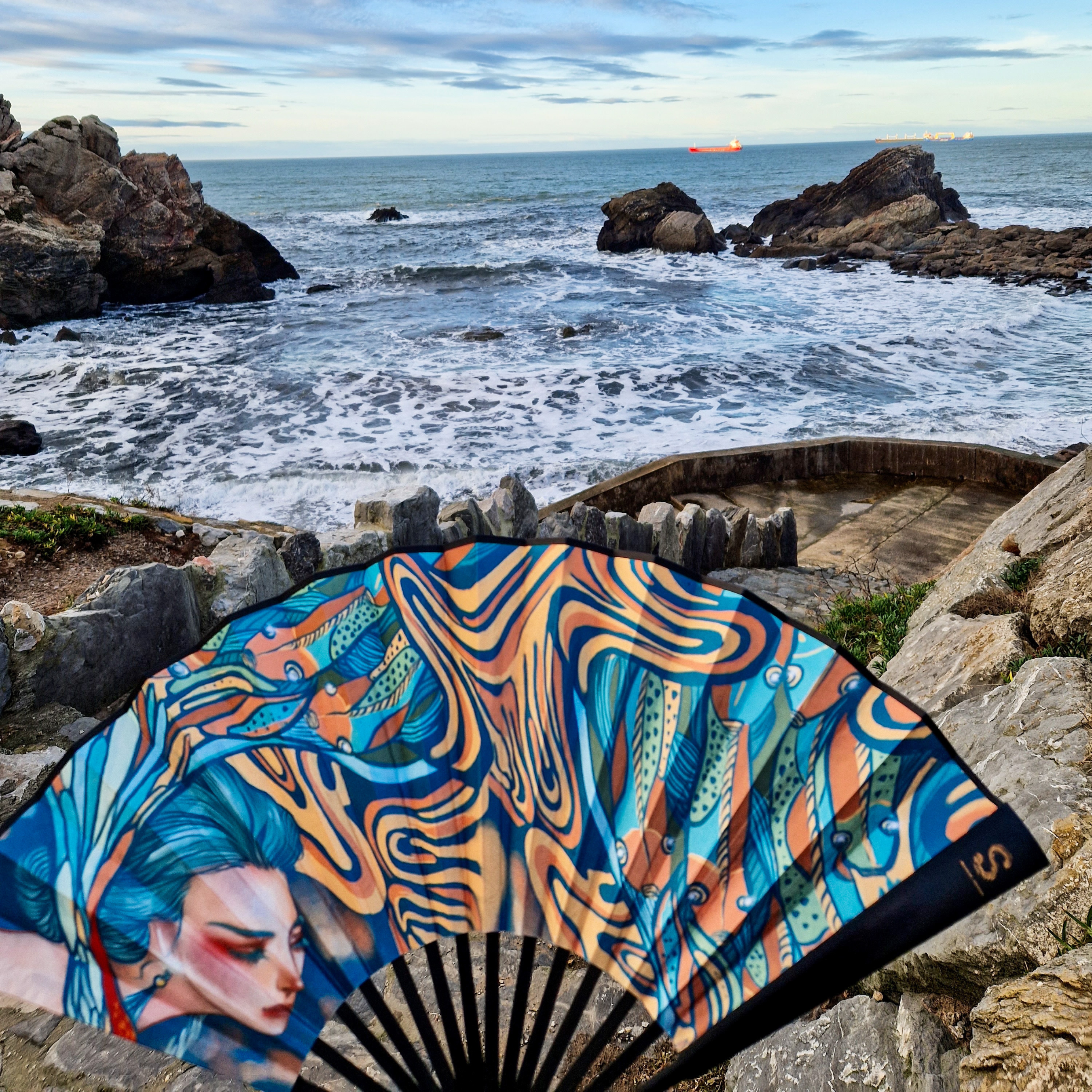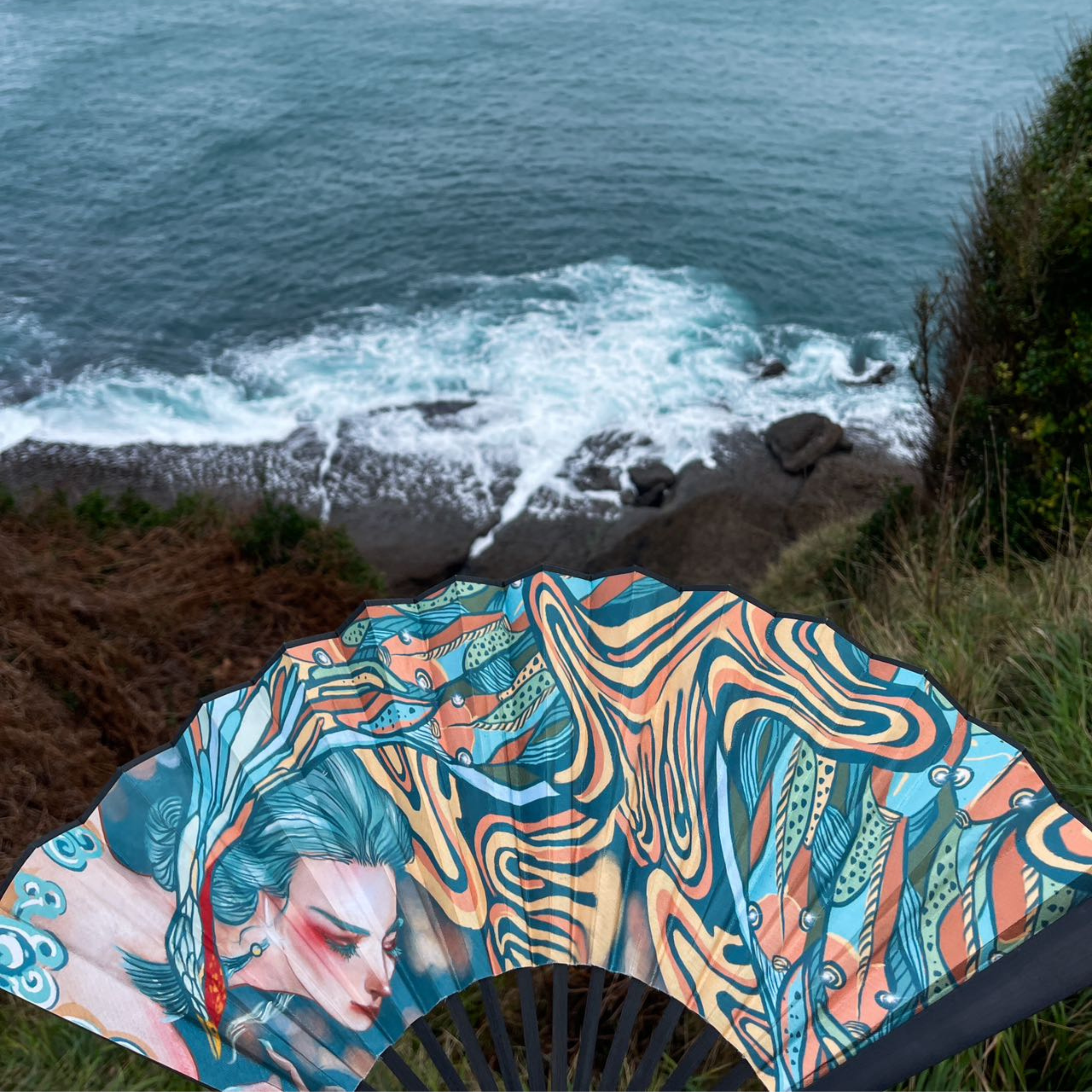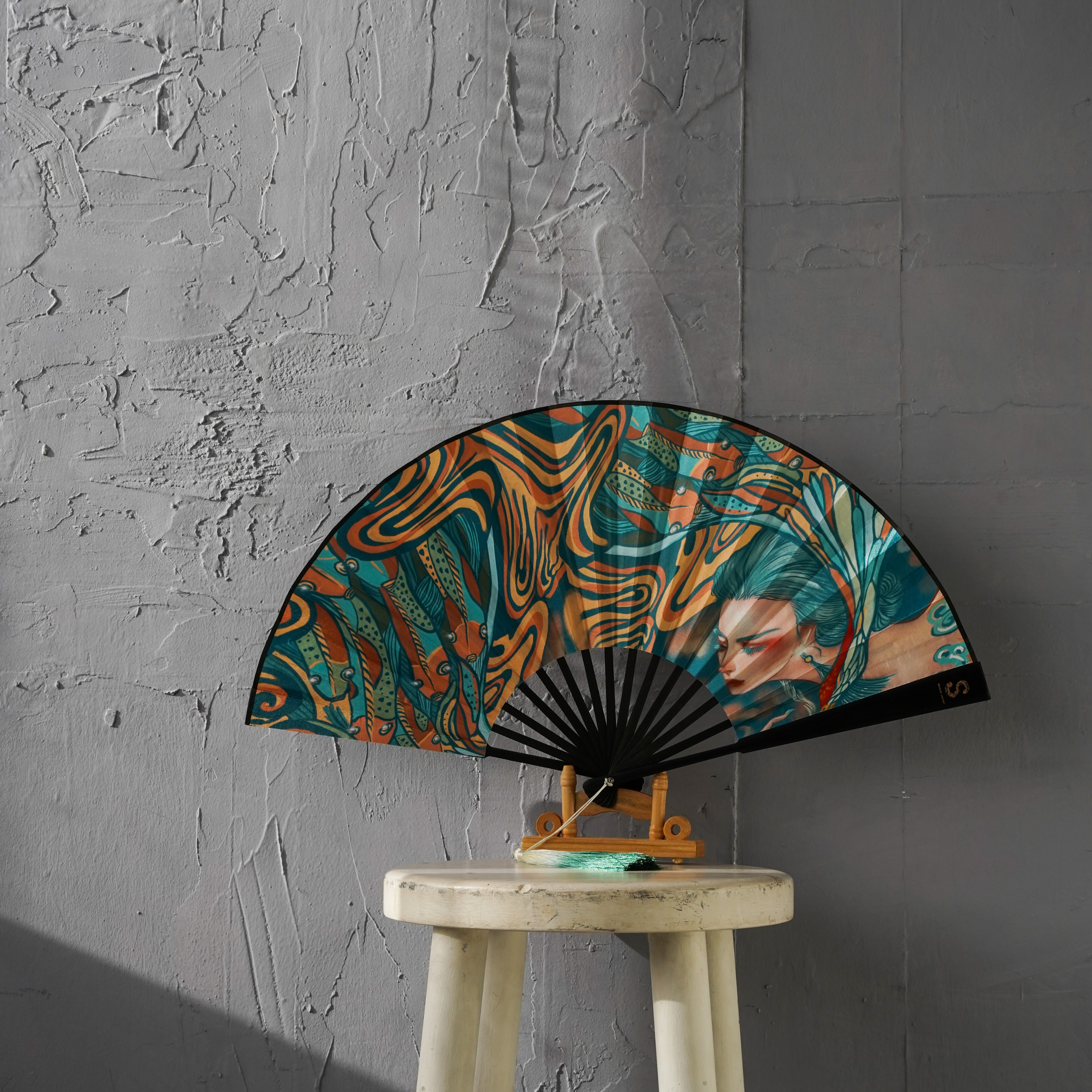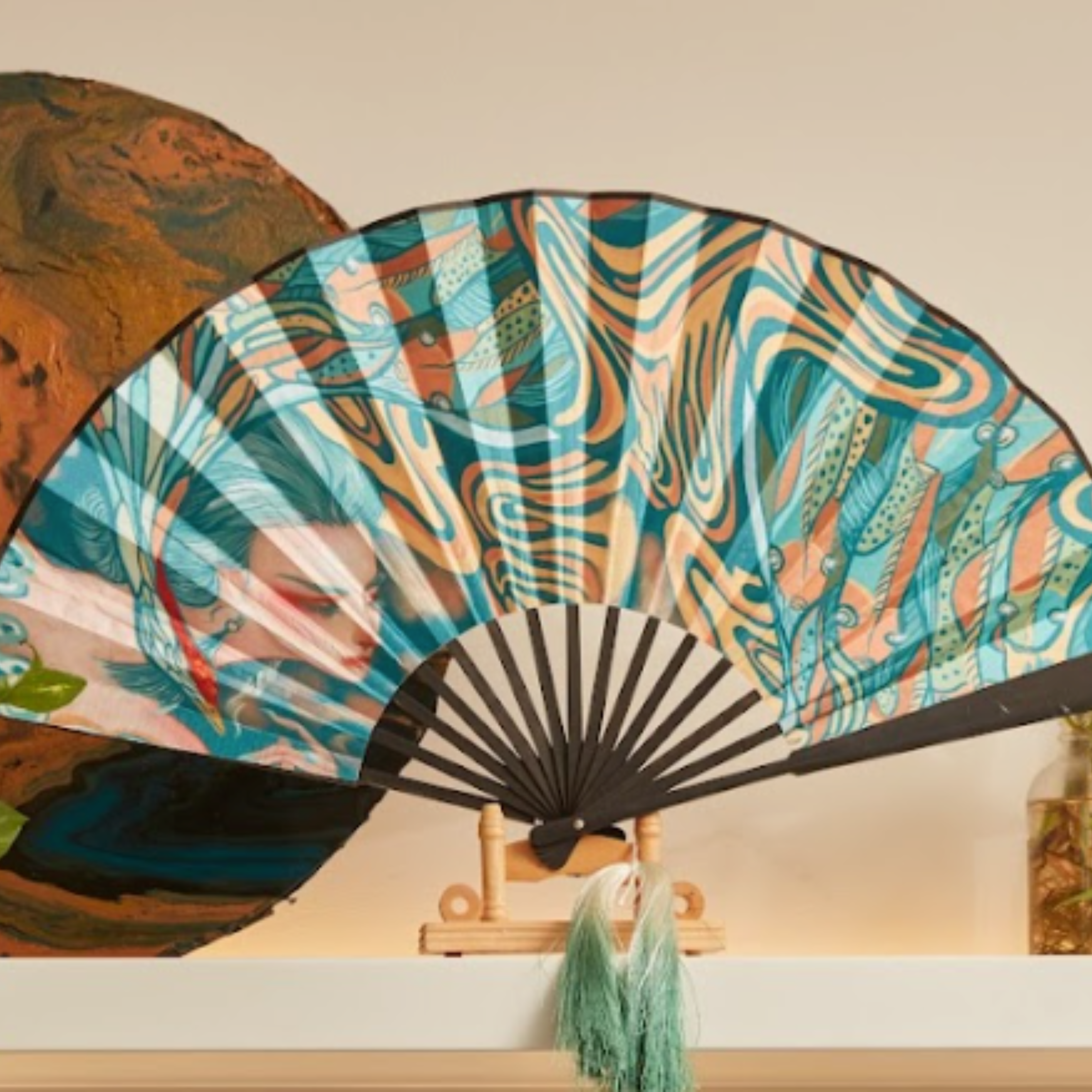 Elevate your space with the elegance of the ‘Blue Maiden’ Holding Fan, a perfect fusion of tradition and artistry. Crafted from luxurious silk satin and fine wood, its intricate design reflects timeless craftsmanship. Lightweight and foldable, this fan is both a functional accessory and a striking decorative piece. Complete with a removable teal tassel and a bamboo stand, it’s an exquisite addition to your collection or a thoughtful gift for those who appreciate refined beauty.