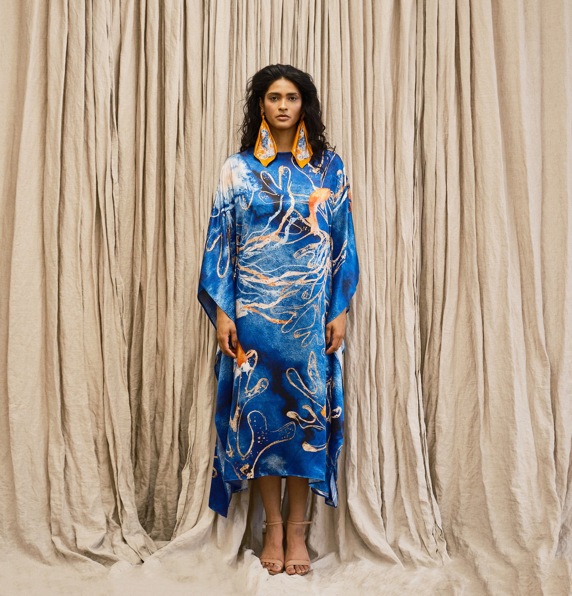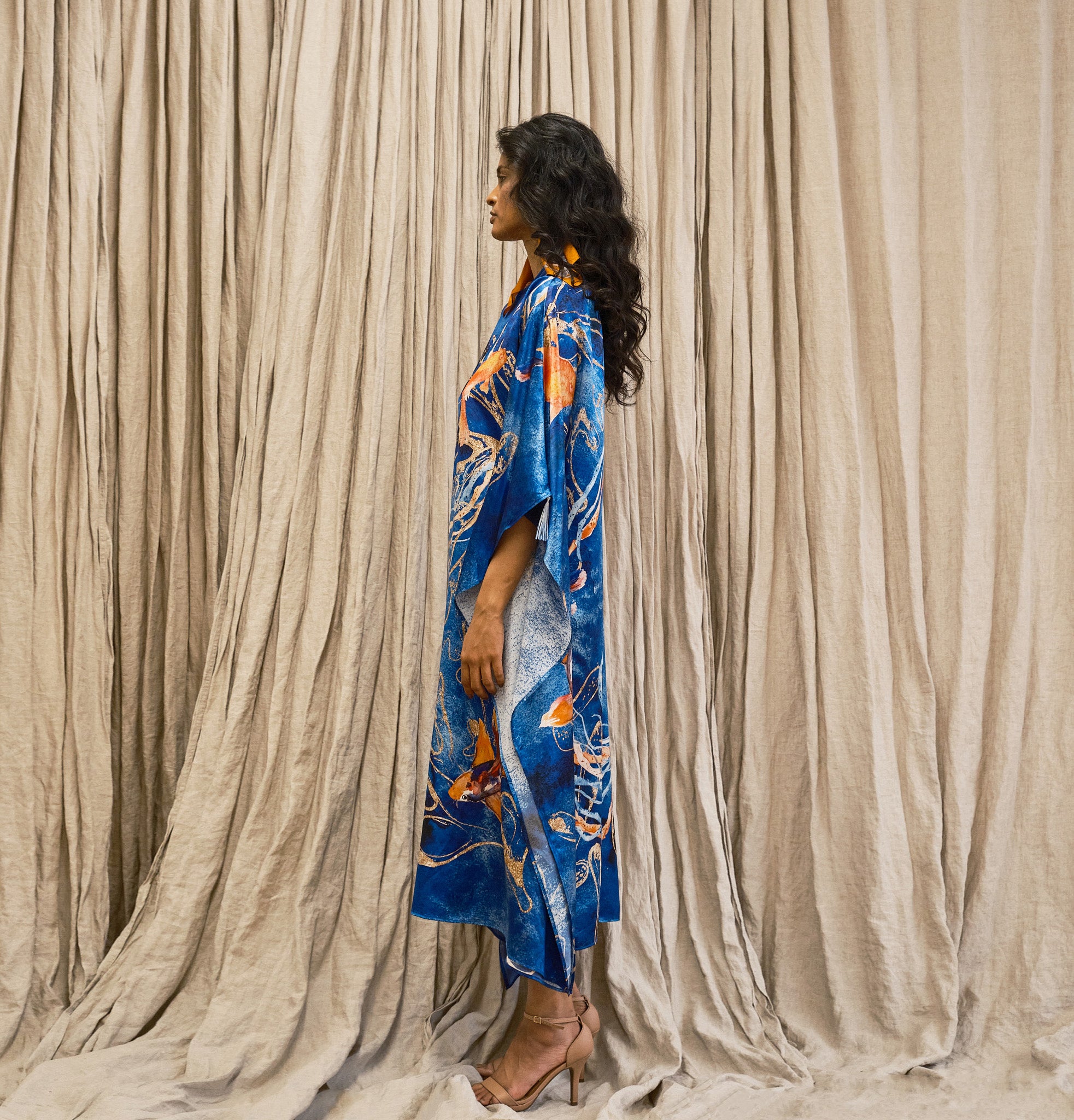 A made to order piece. The Naia Kaftan Dress is a flowy, full-length dress, designed for a light and comfortable wear for maximized relaxation.