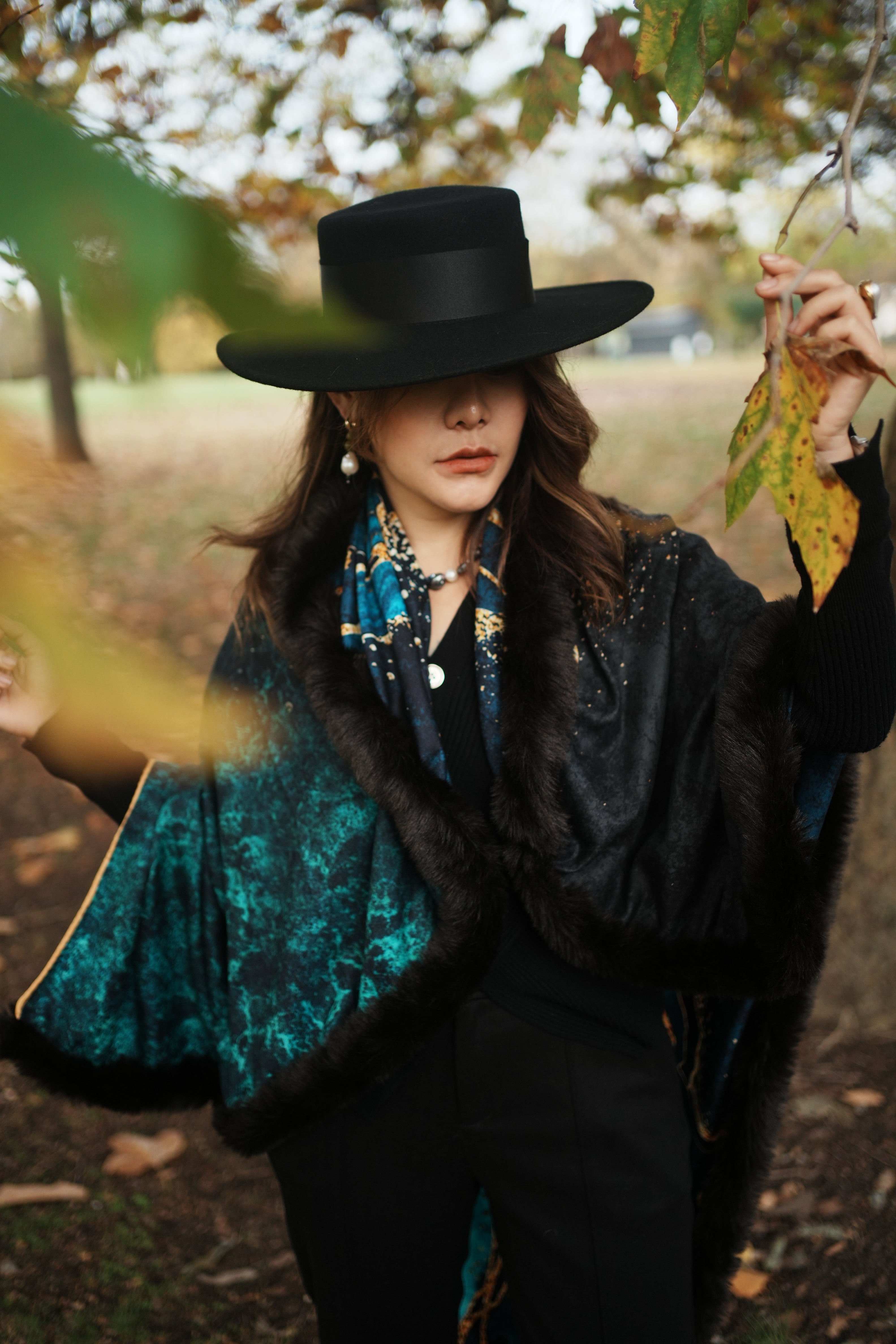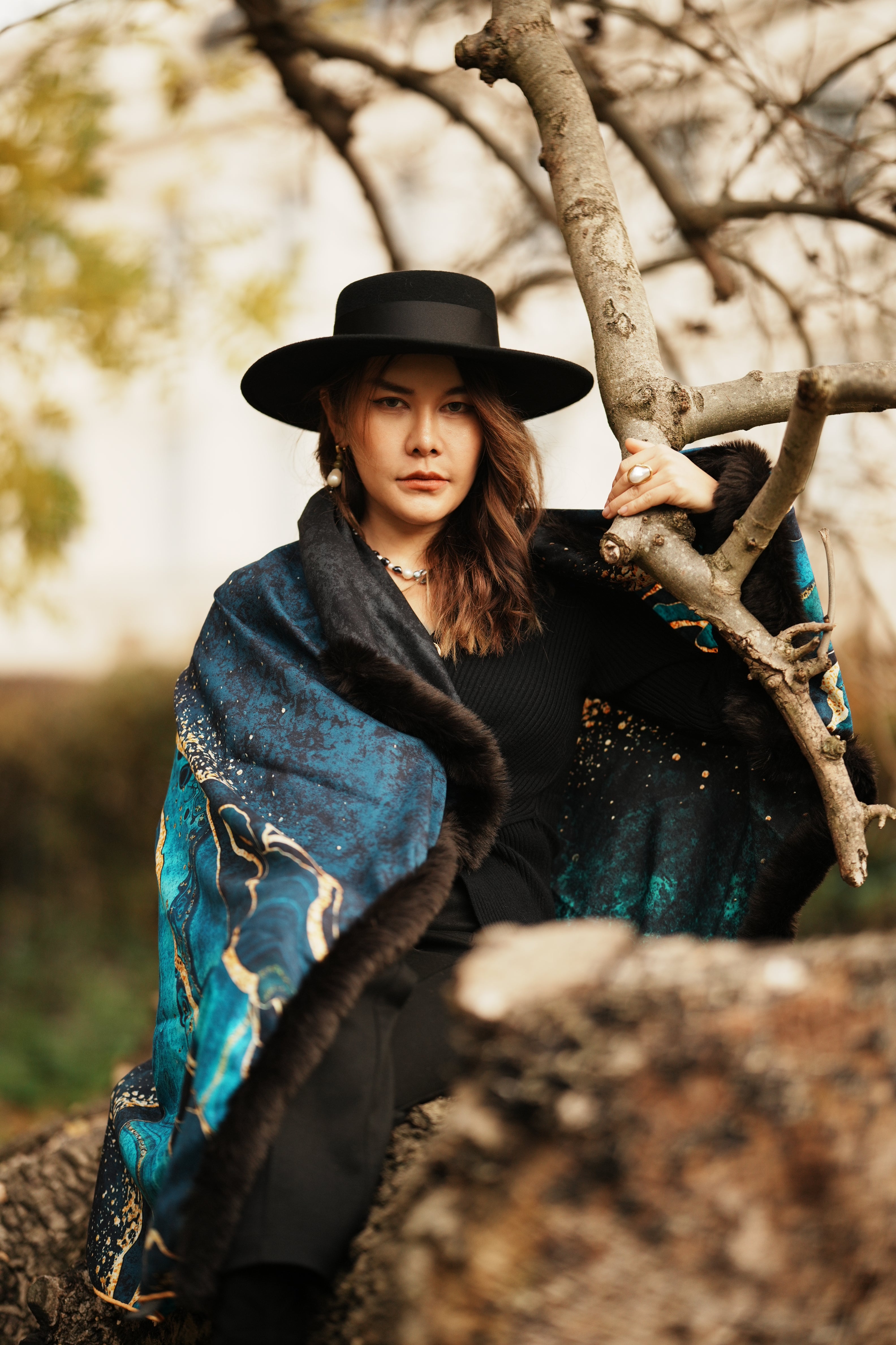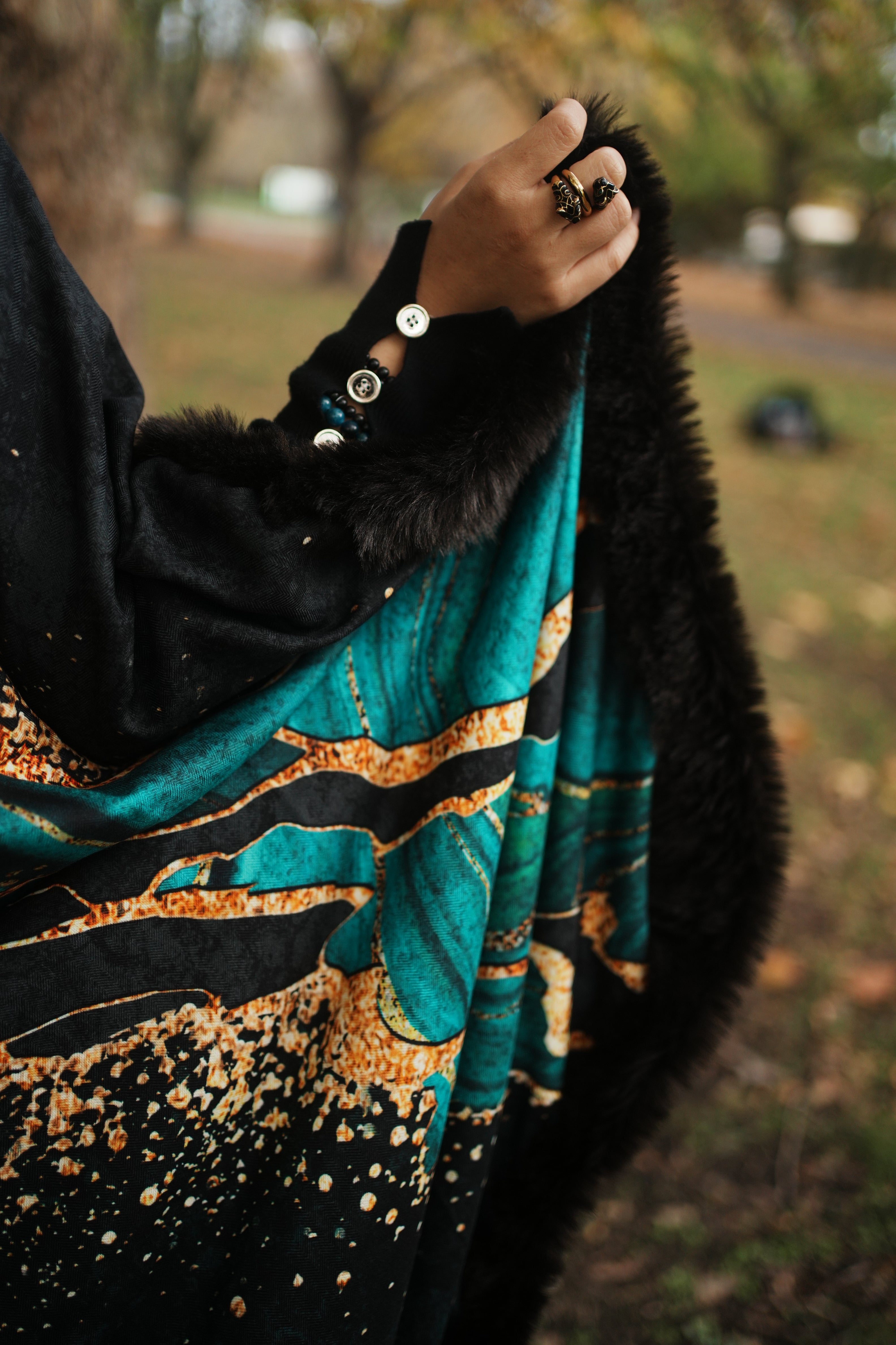 Marble Print Double Sided Wool With Scarf Faux Fur